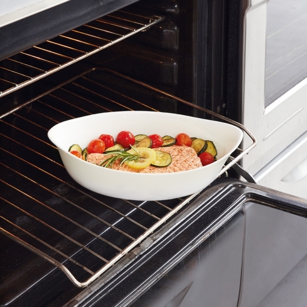 - Непрозорість. Гарний білий колір. Страву з духовки можна відразу ставити на стіл - вона стане його прикрасою