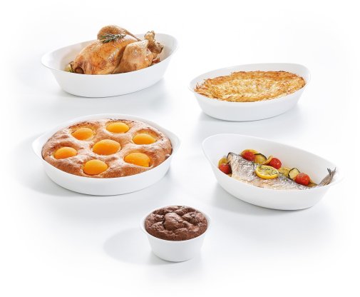 Новинка в асортименті каталогу Luminarc жаростійкі форми SMART CUISINE хороші тим, що можуть використовуватися не тільки для запікання, а й для сервірування. Особливістю даної продукції, є матеріал - жаростійке опалове скло. Це новий матеріал на ринку, який у 3 рази більш стійкий до відколів, ніж кераміка і на 30% легший за аналогічні форми з кераміки і скла, завдяки унікальній технології виготовлення, при цьому залишаючись екстра-міцними. По міцності форми не поступаються звичайним скляним, з огляду на їх унікальну легкість. Створюючи нову продукцію для випічки і запікання компанія Luminarc втілила поєднання кращих якостей форм для запікання зі скла і кераміки.