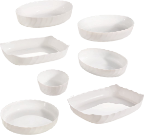 Жаростійкі форми SMART CUISINE Trianon мають перевагу тим, що можуть використовуватися не лише для запікання, а й для сервірування. Особливістю даної продукції, є матеріал - жаростійке опалове скло. Це новий матеріал на ринку, який у 3 рази стійкіший до відколів ніж кераміка та на 30% легший за аналогічні форми з кераміки та скла, завдяки унікальній технології виготовлення, при цьому залишаючись екстраміцними. За міцністю форми не поступаються звичайним скляним, з огляду на їх унікальну легкість. Створюючи нову продукцію для випічки та запікання компанія Luminarc втілила поєднання кращих якостей форм для запікання зі скла та кераміки.