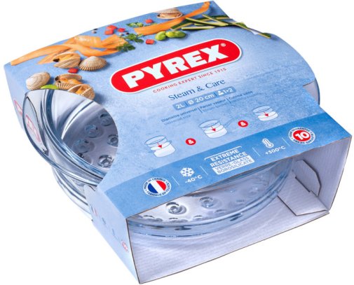 Кошики для готування на пару з жароміцного скла ексклюзивна розробка Pyrex. Вони сумісні з усіма видами каструль відповідного розміру і дозволяють легко готувати дієтичні страви кожен день. Купивши кошик Pyrex, вам не доведеться купувати громіздку пароварку. Напевно на кухні вже є каструля, яка ідеально підійде за розміром.