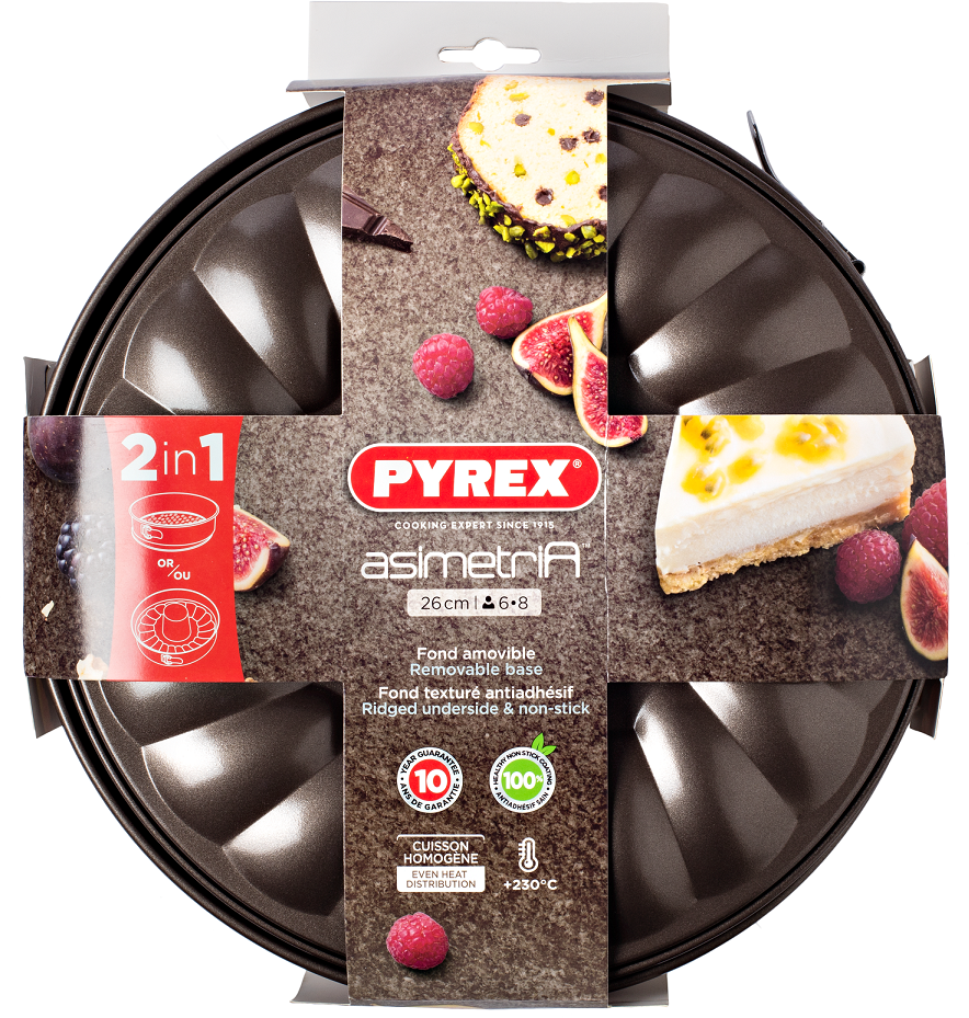 Форми Pyrex Asimetria відрізняються від усіх інших подібних форм унікальною концепцією ручок. Так у формах для запікання велика ергономічна ручка межує з маленькою і призначена для легкого вилучення форми з духовки. З формами Asimetria можна бути впевненим у безпеці при використанні.