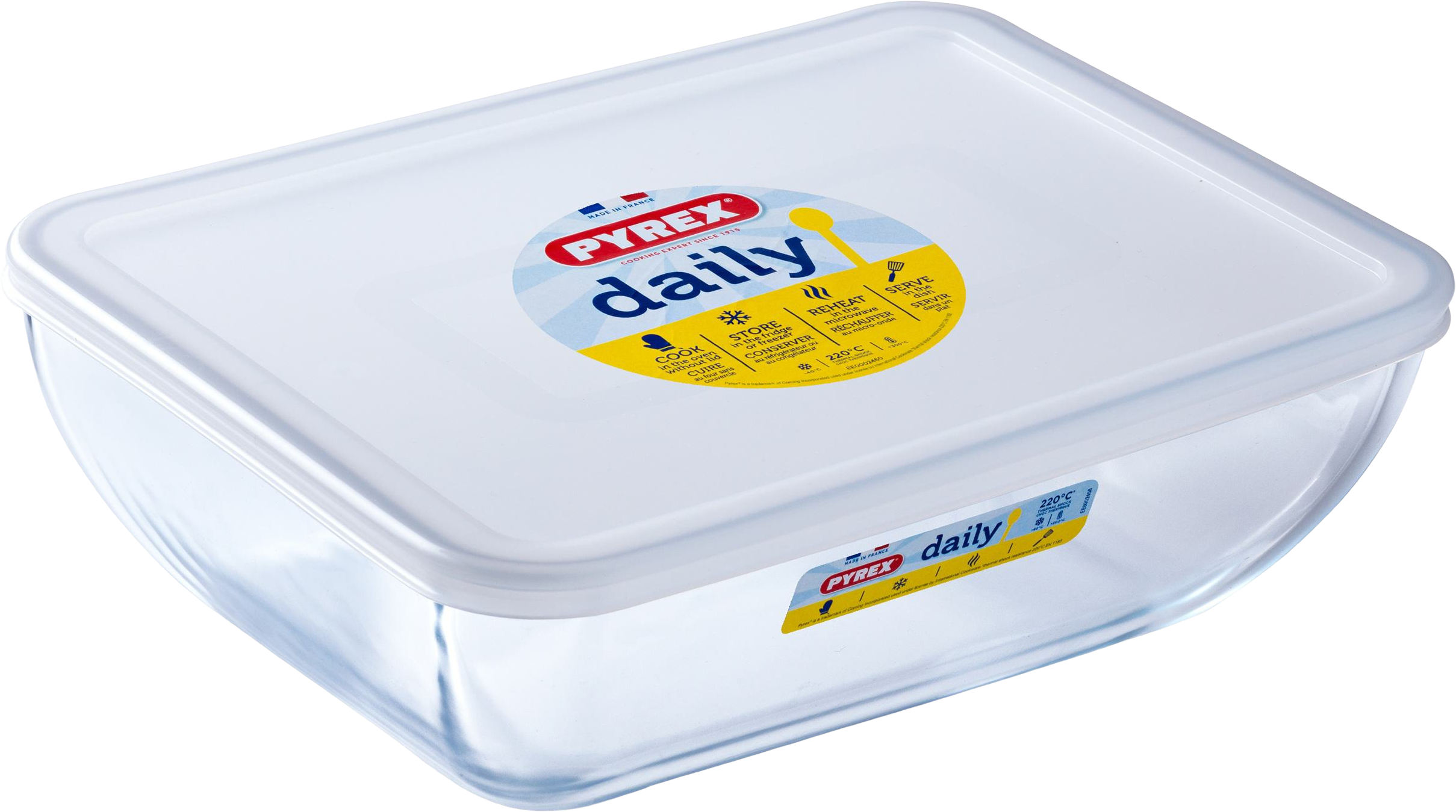 Форми Pyrex Daily — це універсальний посуд для щоденного використання. Виготовлені з безпечних матеріалів, вони довговічні та підходять для духовки, мікрохвильовки, холодильника та морозильної камери. Міцні, безпечні та прості в догляді, вони заощадять вам час і місце на кухні. Пластикова кришка запобігає втраті аромату, а гладка поверхня легко миється та стійка до подряпин.