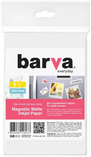 BARVA Everyday - фотопапір магнітний матовий. Призначений для виготовлення магнітних стікерів, що кріпитимуться на металеві поверхні, такі як, презентаційні дошки, холодильники, двері, стелажі тощо.