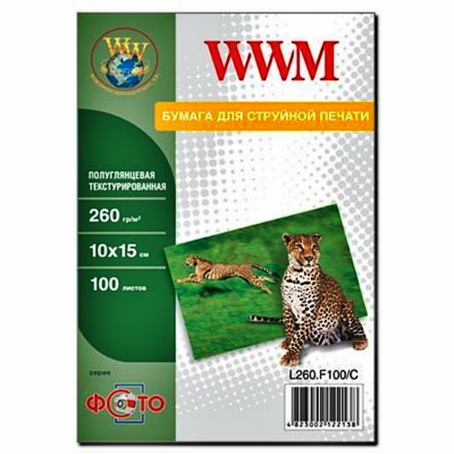 Фотобумага WWM (L260.F100/C) ― якісний, напівглянсовий папір високої щільності зі здатністю швидкого висихання, який відмінно передає кольори, має розмір 10х15 та використовується для струменевого друку.