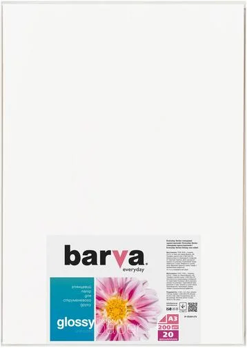 Глянсовий фотопапір виробництва BARVA. Призначений для друку чорнилами на струменевих принтерах. Характеризується щільністю (200 г/м²). Формат аркушу - А3. Забезпечить відмінну якість друку широкого спектру матеріалів. У комплекті поставляється 20 аркушів.