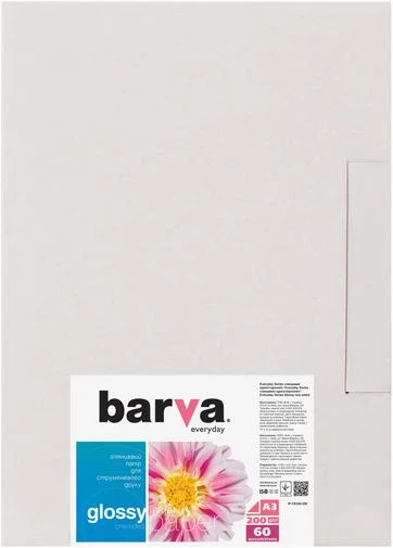 Глянсовий фотопапір виробництва BARVA. Призначений для друку чорнилами на струменевих принтерах. Характеризується щільністю (200 г/м²). Формат аркушу - А3. Забезпечить відмінну якість друку широкого спектру матеріалів. У комплекті поставляється 60 аркушів.