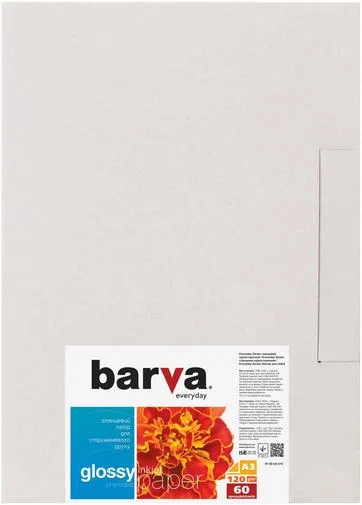 Глянсовий фотопапір виробництва BARVA. Призначений для друку чорнилами на струменевих принтерах. Характеризується щільністю (120 г/м²). Формат аркушу - А3. Забезпечить відмінну якість друку широкого спектру матеріалів. У комплекті поставляється 60 аркушів.