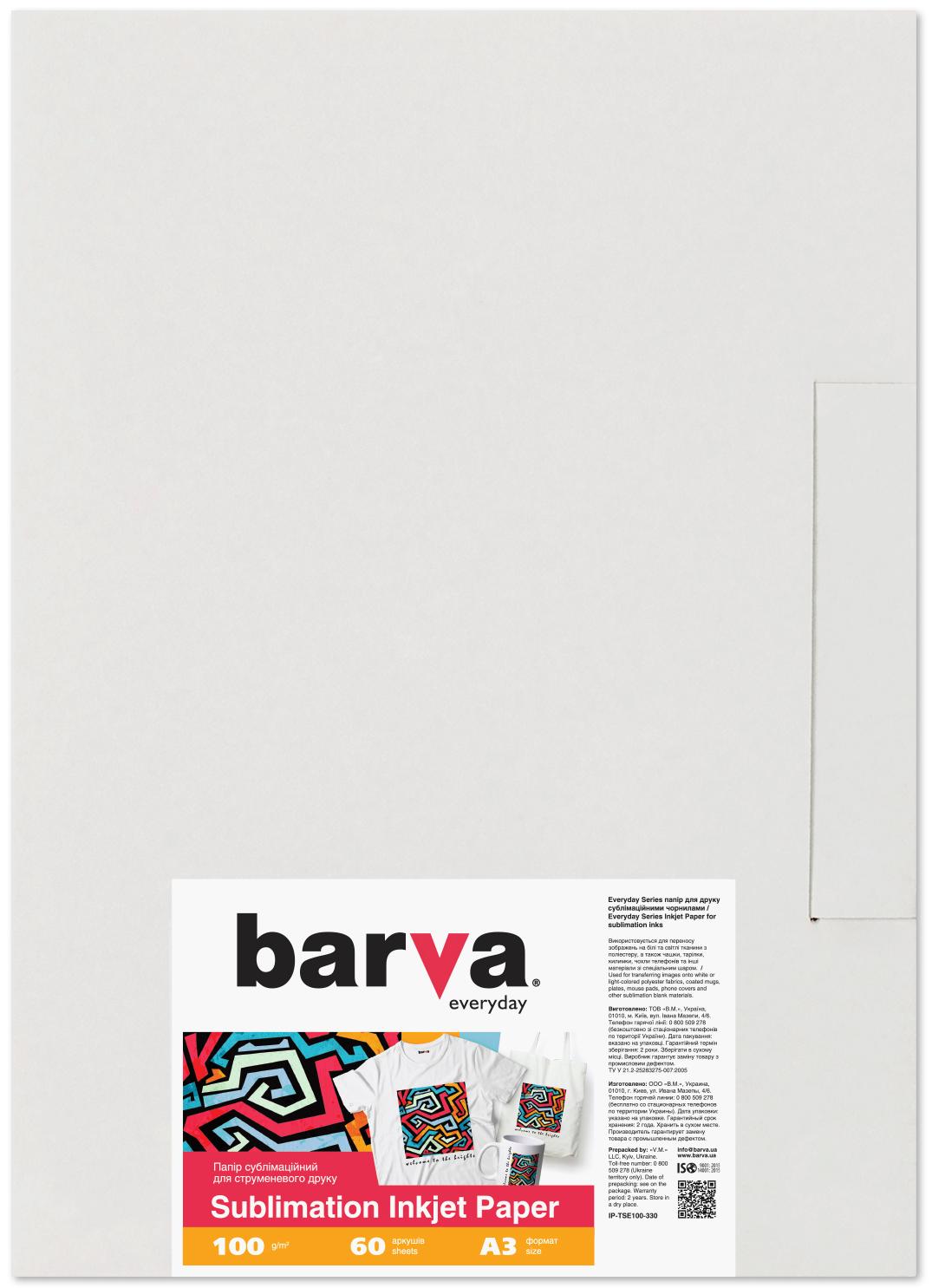 Фотопапір A3 BARVA Everyday сублімаційний 100 г/м2, 60 аркушів (IP-BAR-TSE100-330)