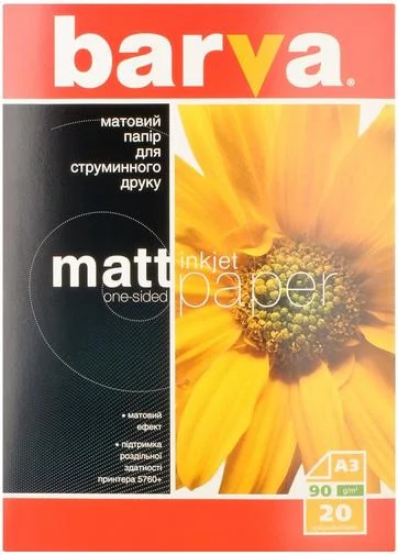 Матовий фотопапір розміру А3 від компанії BARVA. Він швидко поглинає чорнило, а зображення буде мати бархатну глибину.