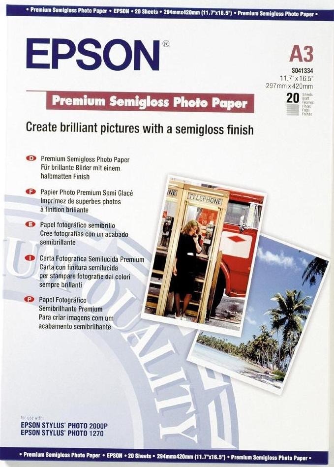 Epson Premium – напівглянцевий фотопапір із полімерним покриттям для струйного друку. Призначений для професійного друку фотографій, презентаційної інформації, флаєрів, постерів та інших графічних матеріалів. Реалізується в кількості 20 листів.