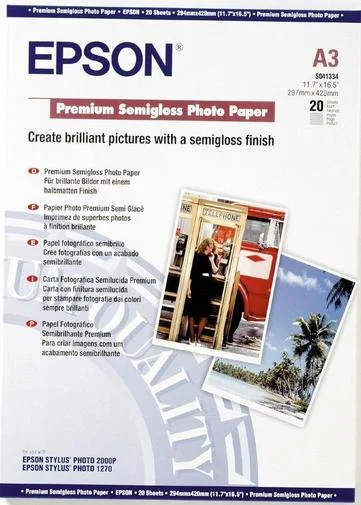 Фотопапір A3 Epson Premium напівглянцевий, 20арк.