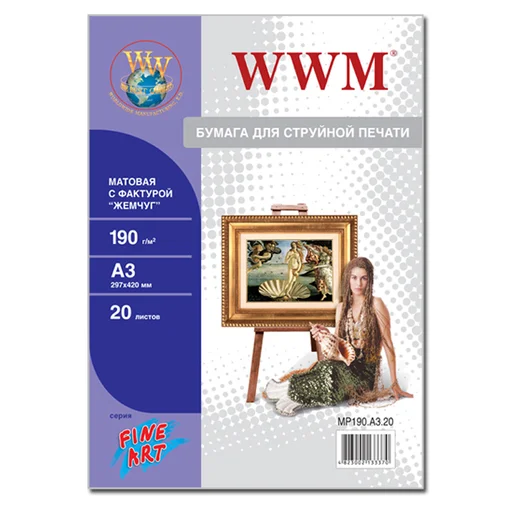Фотопапір А3 WWM Fine Art "Перли" передає усі найкращі якості творіння морських глибин: білизну та ніжність на дотик. На такому носієві найкраще друкувати репродукції, художні фото, портфоліо, які потребують цікавого бачення та оригінального рішення. Підходить для друку на струменевих принтерах.