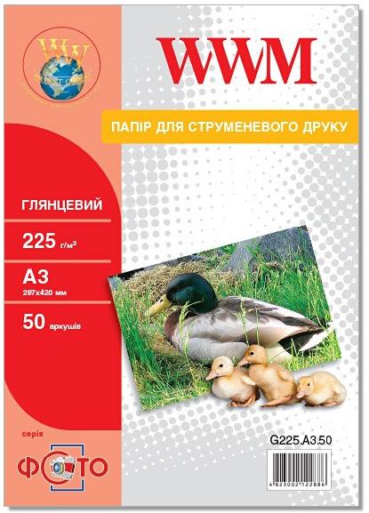 Глянцевий фотопапір виробництва WWM. Призначений для друку водорозчинними чорнилами на струменевих принтерах. Односторонній фотопапір, який характеризується щільністю (225 г/м²). Формат аркушу - А3. Забезпечить відмінну якість друку рекламних матеріалів. У комплекті поставляється 50 аркушів.