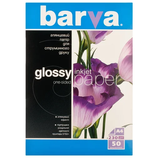 Ви не пошкодуєте, якщо скористаєтеся цим папером для друку зображень, насичених багатьма кольорами та відтінками. Вона близька до традиційного фотопаперу за властивостями поверхні і якістю друку, але коштує на порядок менше. Перевага глянсового фотопаперу BARVA - швидке висихання надрукованого зображення.