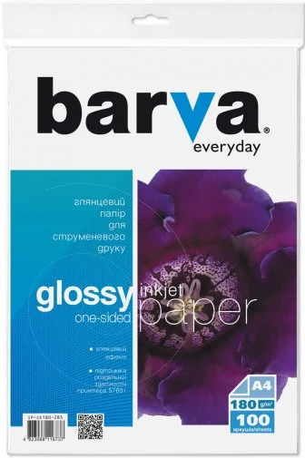 Фотопапір A4 BARVA Everyday глянцевий 180г/м2, 100 аркушів (IP-BAR-CE180-283)