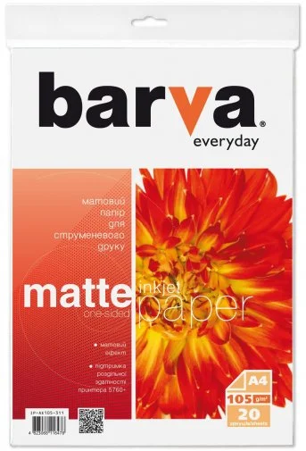 Фотопапір A4 BARVA Everyday матовий 105 г/м2, 20 аркушів (IP-BAR-AE105-311)