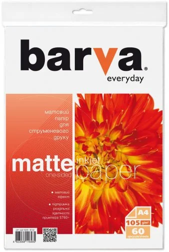 Фотопапір A4 BARVA Everyday матовий 105 г/м2, 60 аркушів (IP-BAR-AE105-312)