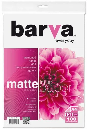 Фотопапір A4 BARVA Everyday матовий 125 г/м2, 100 аркушів (IP-BAR-AE125-318)