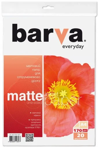 Фотопапір A4 BARVA Everyday матовий 170г/м2, 20 аркушів (IP-BAR-AE170-321)