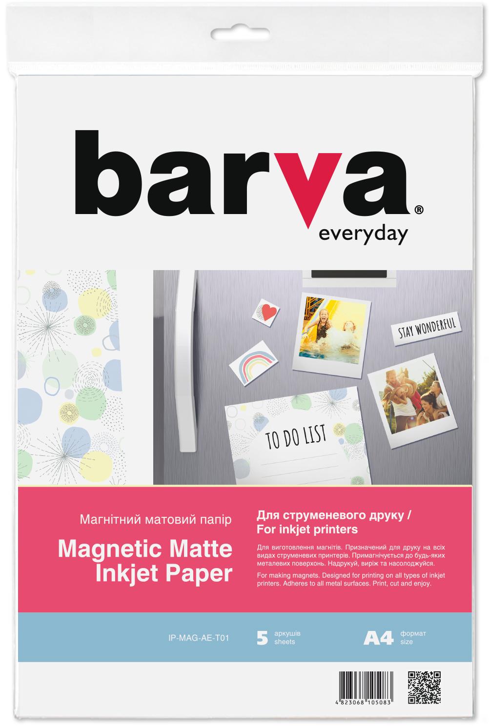 BARVA Everyday - фотопапір магнітний матовий. Призначений для виготовлення магнітних стікерів, що кріпитимуться на металеві поверхні, такі як, презентаційні дошки, холодильники, двері, стелажі тощо.