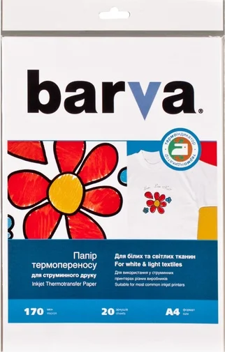 BARVA призначена для перенесення на тканину зображень, отриманих на струменевому принтері. Маючи такий папір, можна за допомогою звичайної праски перенести зображення на футболку, шорти, серветки, прапорці та інші подібні предмети.