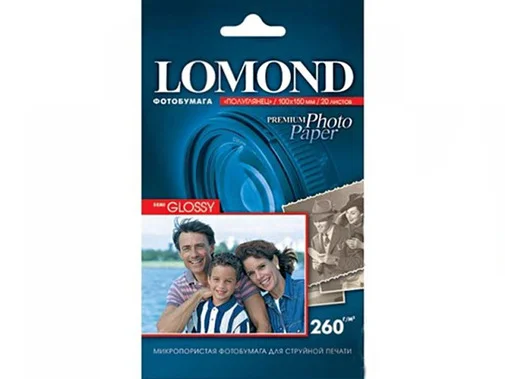 Фотопапір Lomond - це проміжний продукт із поверхнею, що поєднує мікропористу структуру матового покриття та гладеньку і блискучу - глянсового. Завдяки тонкому верхньому прошарку із поліестеру, фарба не розтічеться і не розмажеться по поверхні щойно віддрукованого знімку. Підходить для використання із водорозчинними та пігментними чорнилами.