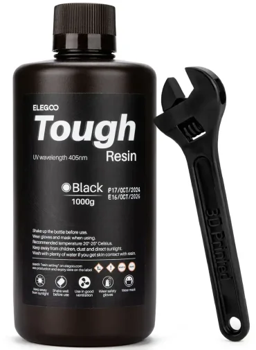 Фотополімерна смола ELEGOO Tough Resin 1 кг, чорна (артикул 50.103.0271) — високоміцний матеріал для 3D-друку, розроблений для LCD/DLP/MSLA-принтерів із довжиною хвилі 405 нм. Смола відрізняється підвищеною стійкістю до ударів: затверділі деталі можна свердлити, гнути і піддавати механічним навантаженням без появи тріщин і деформації. Завдяки гнучкості деталі при деформації легко повертаються до вихідної форми, а висока стійкість до ударів робить матеріал оптимальним вибором для виготовлення функціональних конструкцій, інженерних прототипів, тримачів, корпусів та кріплень.