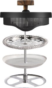 - Конструкцією прес-фільтра передбачена пружина з фіксацією, що забезпечує щільне прилягання до колби та краще фільтрування.
