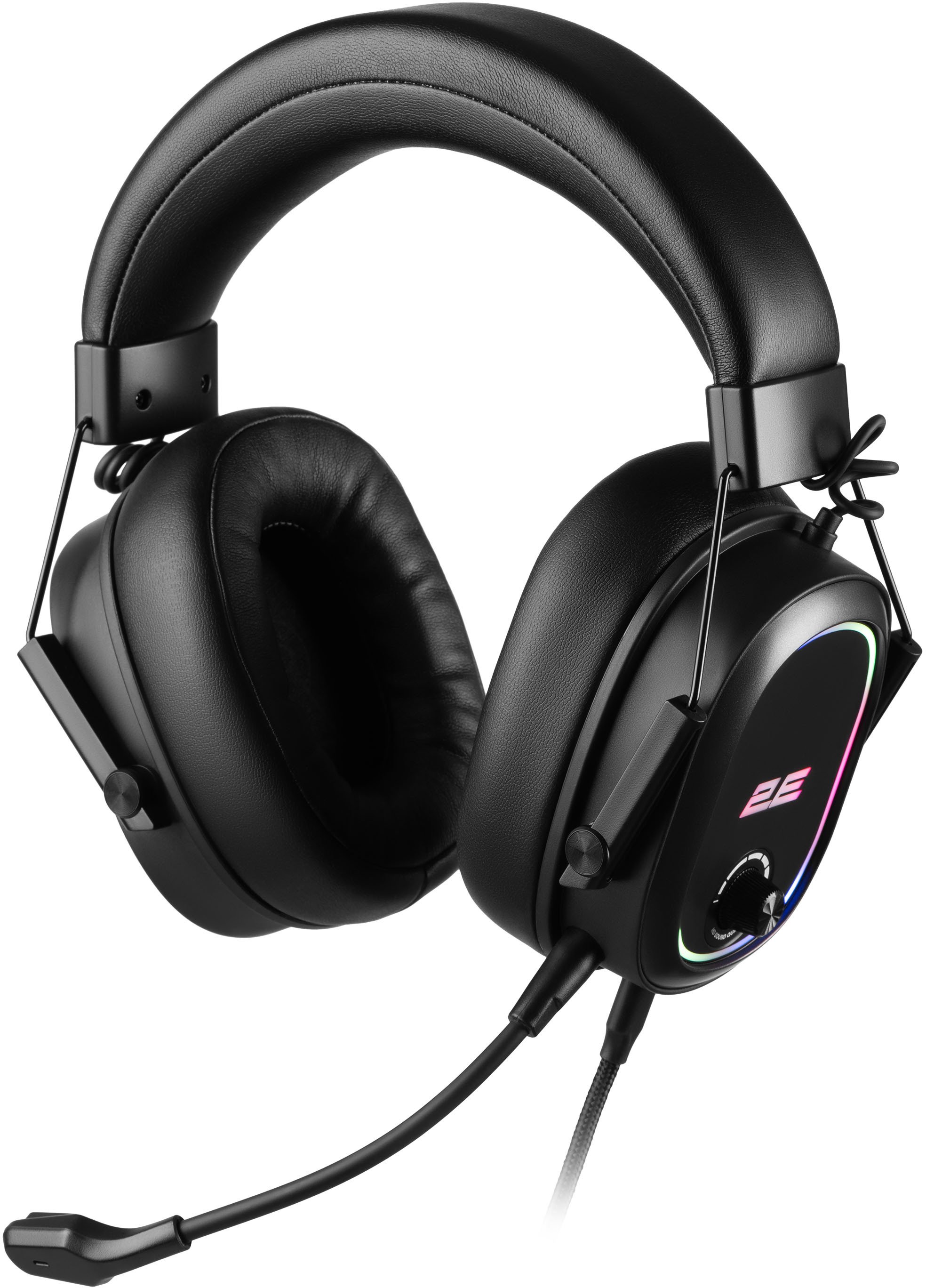 Дизайн гарнітури витриманий у агресивному ігровому стилі: лаконічний чорний корпус із металевими елементами та яскраве RGB-підсвічування створюють атмосферу справжньої битви, надаючи робочому місцю геймера характерного вигляду. 2E Gaming HG320 V2 — оптимальний вибір для тих, хто шукає ігрові навушники з об'ємним звуком 7.1, вбудованим мікрофоном і стильним підсвічуванням.