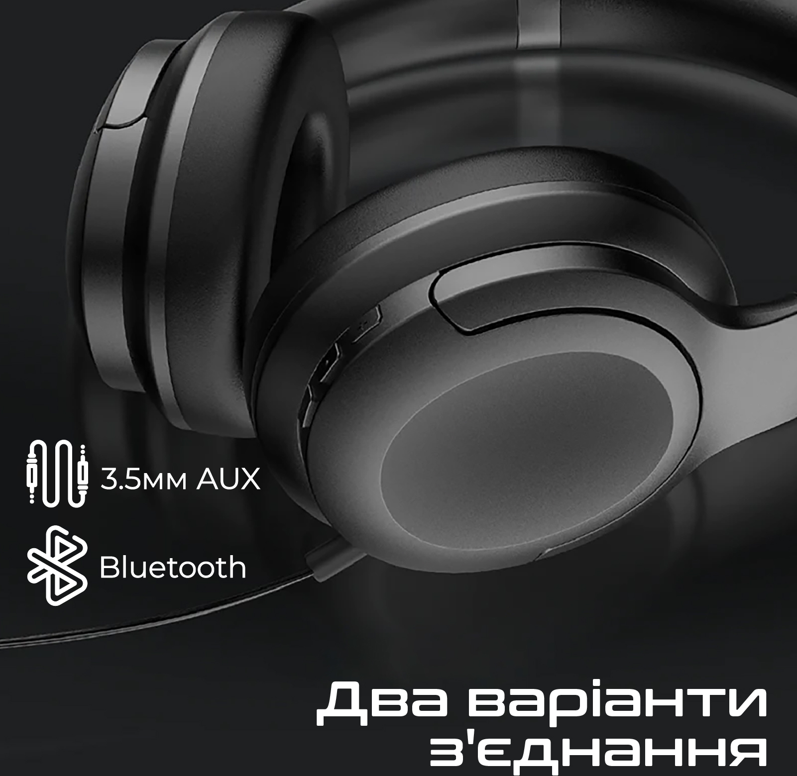 Прослуховуй музику через Bluetooth (до 10 м) або підключивши ґаджет за допомогою комплектного 3.5 мм аудіо-кабелю (AUX).