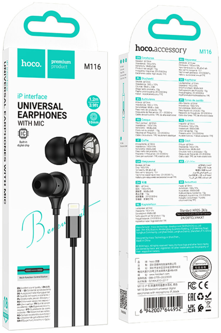 HOCO M116 — це універсальні дротові навушники з конектором Lightning, які ідеально підходять для всіх сучасних моделей Apple. Завдяки якісному відтворенню звуку ви зможете насолоджуватися улюбленою музикою на високому рівні гучності, при цьому не створюючи дискомфорту для оточуючих. Напіввідкрите акустичне оформлення забезпечує комфортне прилягання до вуха та помірну звукоізоляцію, що дозволяє чути важливі зовнішні звуки, але водночас насолоджуватися чистим і деталізованим аудіо.