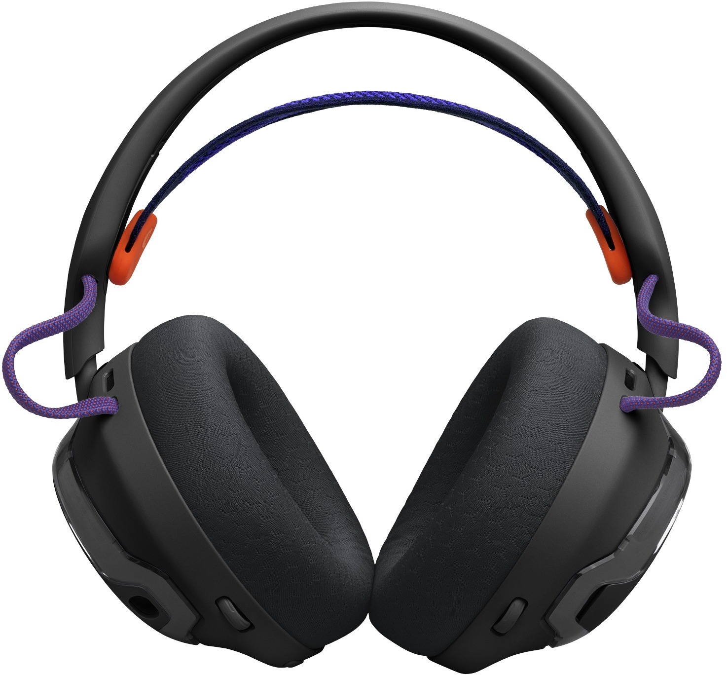 Ця модель у класичному чорному кольорі з матовим покриттям базується на 50-мм карбонових динамічних драйверах з технологією JBL Quantum Spatial Sound, яка створює об'ємне звучання з точним позиціюванням джерел звуку, перетворюючи кожну сесію на іммерсивний досвід з насиченими басами, чистими середніми частотами та високими тонами, а Bluetooth 5.3 з низькою затримкою гарантує стабільне з'єднання на відстані до 10 м без розривів. Сумісна з ПК, консолями (PS, Xbox, Switch), мобільними пристроями та іншими платформами через низьколатентний 2.4 ГГц донгл, Bluetooth чи дротове підключення USB-C, гарнітура встановлюється plug-and-play з софтом JBL QuantumENGINE для кастомізації еквалайзера, мікрофона та ефектів, роблячи її незамінним інструментом для мультиплатформових ігор чи дзвінків без лагів.