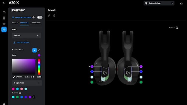Комфорт тут на першому місці: вага всього 300 грамів, здвоєне м’яке наголів’я та продумана конструкція роблять гарнітуру практично невідчутною навіть після кількох годин гри. RGB-підсвічування LIGHTSYNC з космічною тематикою додає стилю — його можна налаштувати через програму G HUB під настрій, гру чи власну колірну схему. А для мобільного керування є зручний додаток Logitech G на iOS та Android.