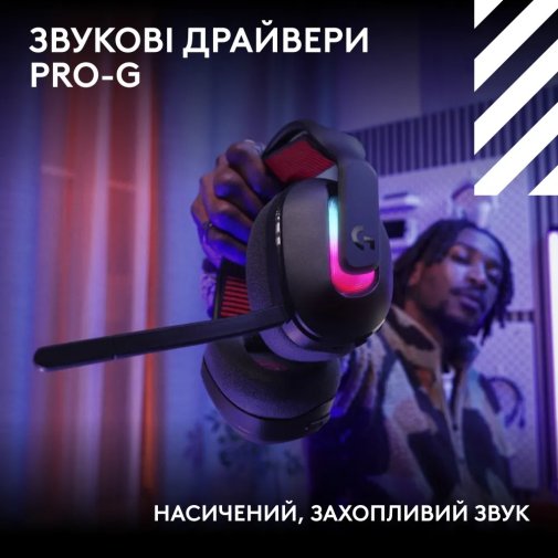 Звук на рівні 24-бітного LIGHTSPEED забезпечує чітке, деталізоване звучання з частотним діапазоном 20–20 000 Гц, а 40 мм PRO-G драйвери з live edge технологією дають точну локалізацію звуків і потужний бас. 48 кГц мікрофон з omnidirectional патерном і технологією Blue VO!CE пропонує студійну якість голосу, зручну кнопку mute з індикатором і можливість кастомізації через Logitech G Hub або мобільний додаток.