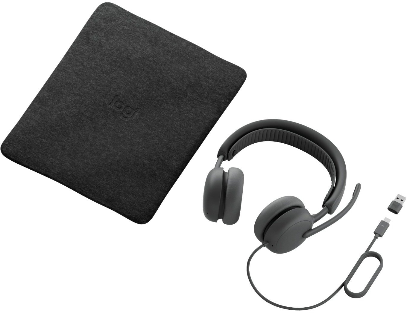 Навушники підключаються через USB-C або USB-A (в комплекті є адаптер), працюють у режимі plug-and-play без потреби в додаткових драйверах, а для тонкого налаштування звуку та ANC передбачена програма Logi Tune.
