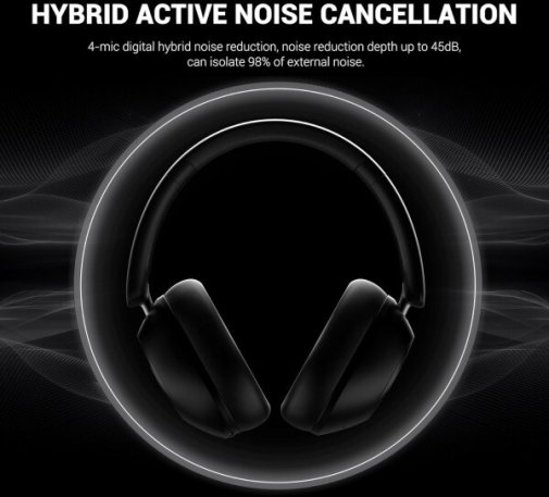 Оснащена вбудованими мікрофонами з технологією активного шумопоглинання ANC, гарнітура ефективно ізолює понад 98% зовнішнього шуму, дозволяючи зосередитися на розмові або улюбленому контенті навіть у галасливому середовищі. Голос передається чітко та природно без сторонніх перешкод.