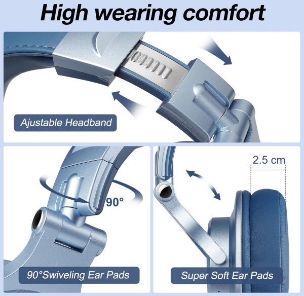 Дизайн навушників продуманий для тривалого комфорту: м’які амбушури, що охоплюють вуха, ергономічна конструкція та поворот чашок на 90° в обидва боки роблять їх зручними навіть при багатогодинному використанні. Навушники легкі, компактні та постачаються з практичним чохлом, двома кабелями, зарядним шнуром.
