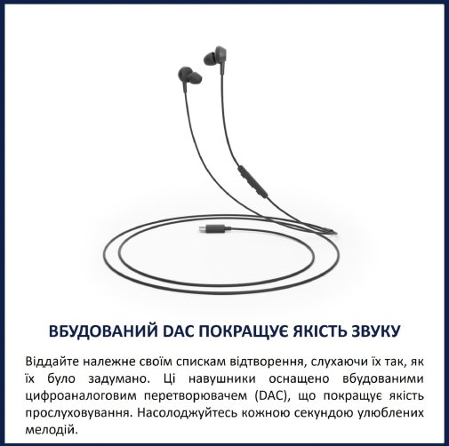 Завдяки потужним 10-мм динамікам навушники видають насичені баси, які додають драйву будь-якій музиці, від електроніки до хіп-хопу. Звук залишається чітким і збалансованим незалежно від жанру, а вбудований цифроаналоговий перетворювач (DAC) додатково покращує якість прослуховування, роблячи деталі більш виразними та природними. Частотний діапазон від 20 до 20 000 Гц забезпечує повне охоплення всіх необхідних тонів.