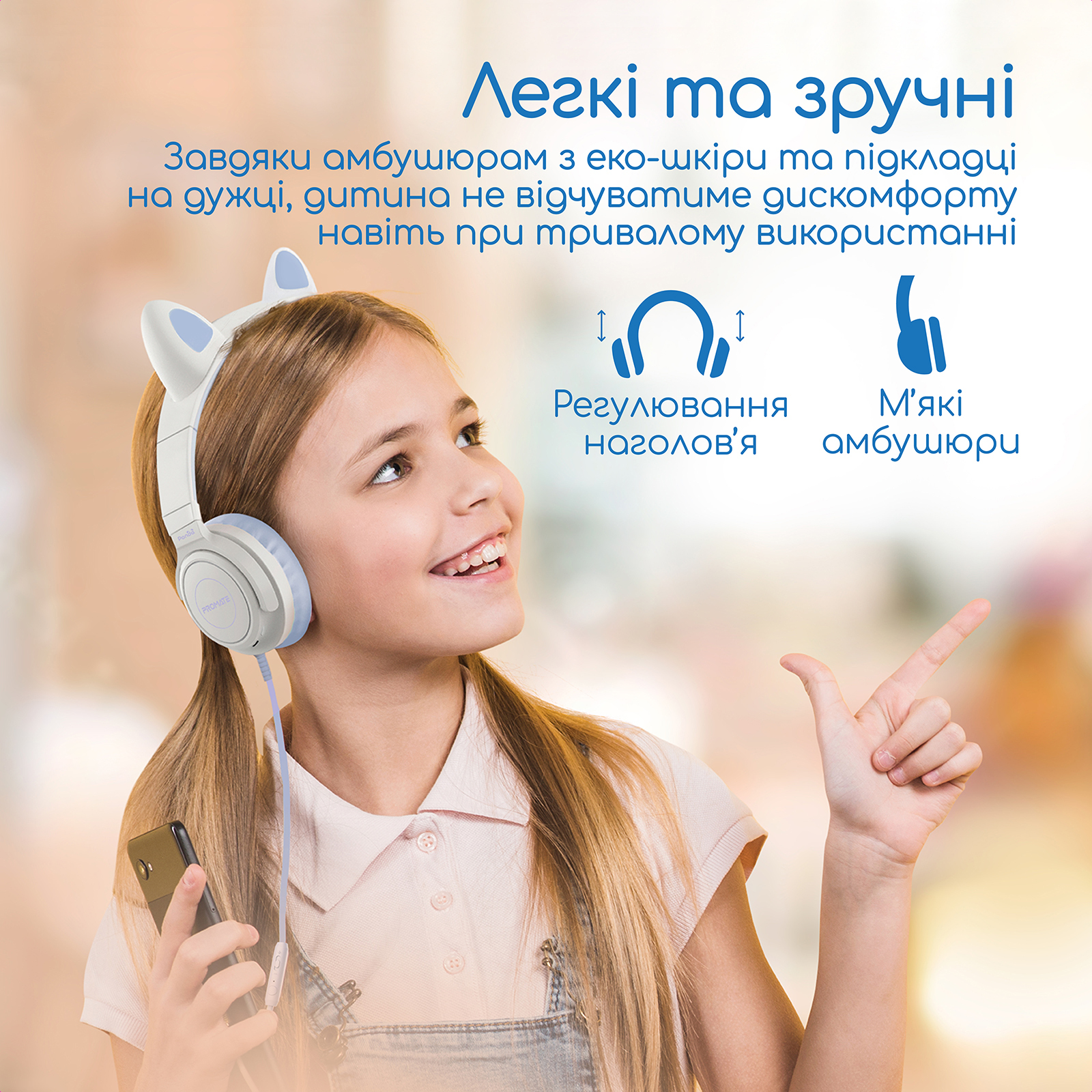 Дозволяє змінювати розмір гарнітури. Навушники зростатимуть разом із вашою дитиною.