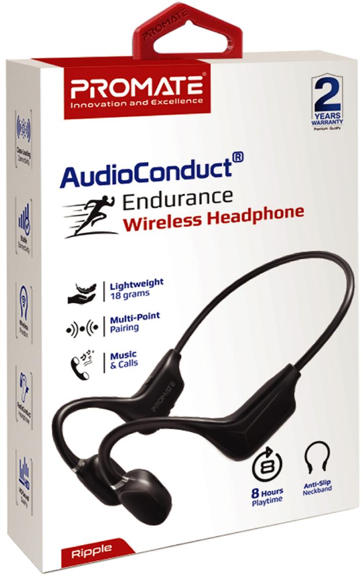 Ripple — ергономічні спортивні навушники від Promate, розроблені за фірмовою технологією AudioConduct. Завдяки їй, ти будеш чути що відбувається навколо шляхом відкритої конструкції та одночасно слухати музику або розмовляти телефоном.