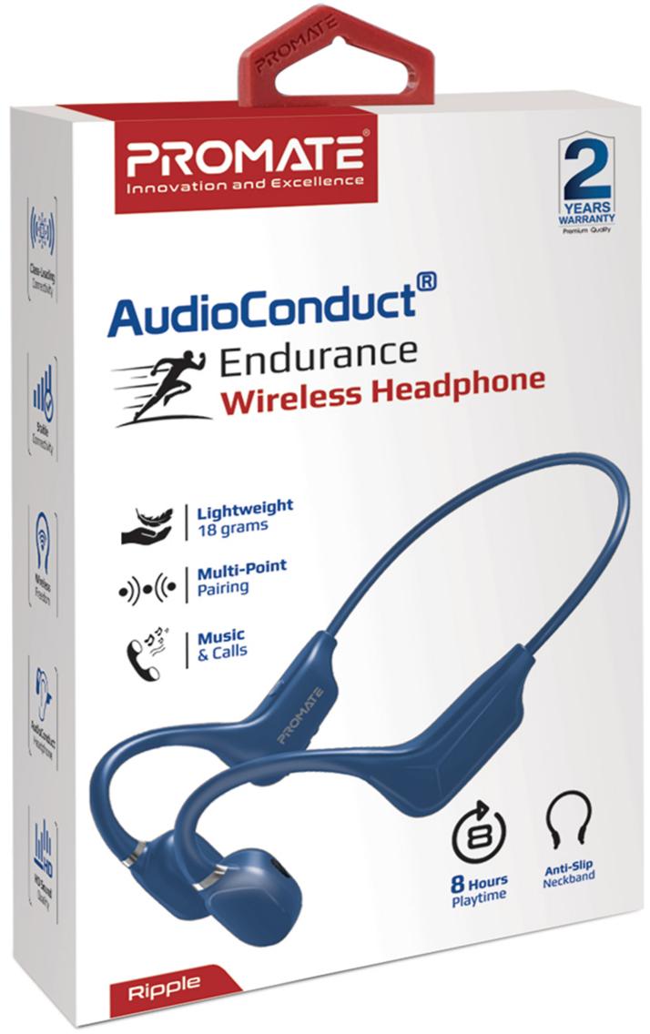 Ripple — ергономічні спортивні навушники від Promate, розроблені за фірмовою технологією AudioConduct. Завдяки їй, ти будеш чути що відбувається навколо шляхом відкритої конструкції та одночасно слухати музику або розмовляти телефоном.