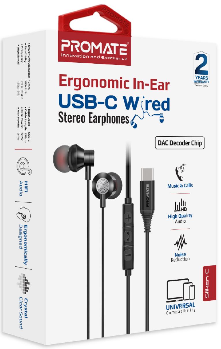 Silken-C — дротові вакуумні навушники з USB-C конектором. Чисте басове звучання та HD мікрофон в ергономічному корпусі роблять їх ідеальними для тривалого прослуховування музики.