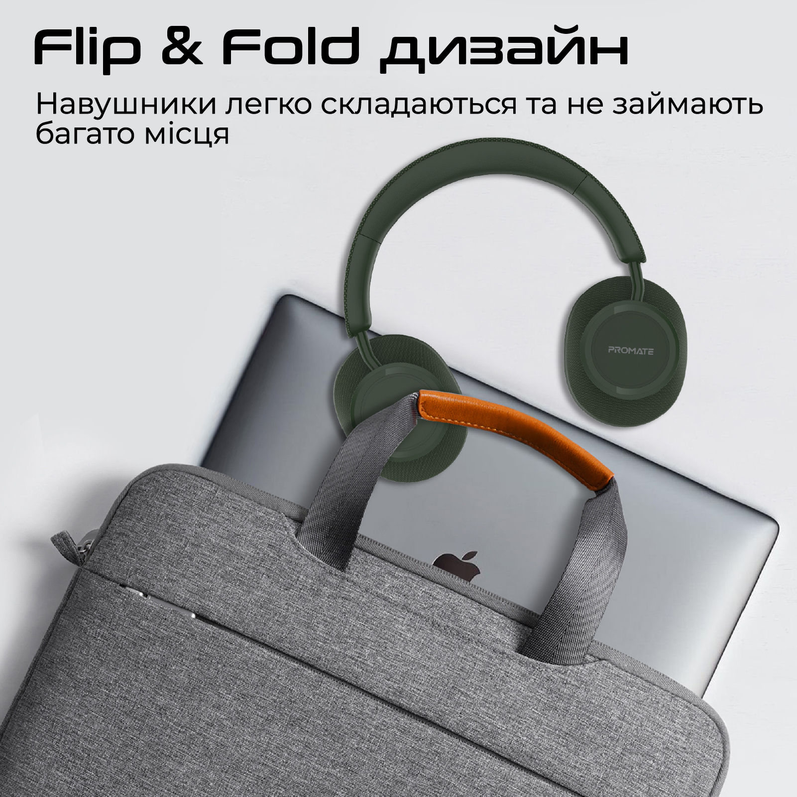 Навушники легко складаються та не займають багато місця, їх можна взяти з собою в поїздку і на прогулянку.