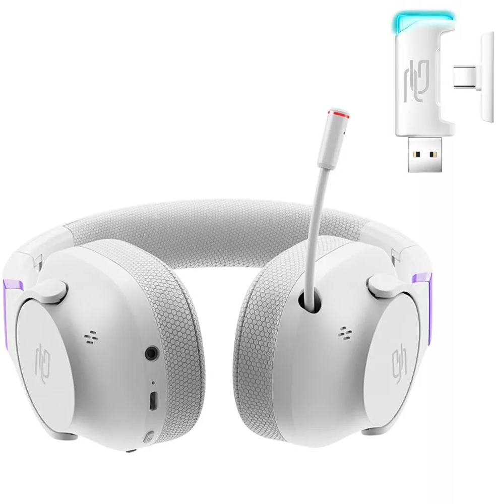 Гарнітура підтримує три незалежні режими підключення: бездротовий 2.4 ГГц через USB-донгл, Bluetooth 5.4 для з'єднання зі смартфоном або ноутбуком та аналоговий AUX — дротовий резервний варіант, що дозволяє продовжити сесію навіть при повністю розрядженому акумуляторі. Завдяки такому набору режимів гарнітура однаково комфортна і за ПК, і зі смартфоном.