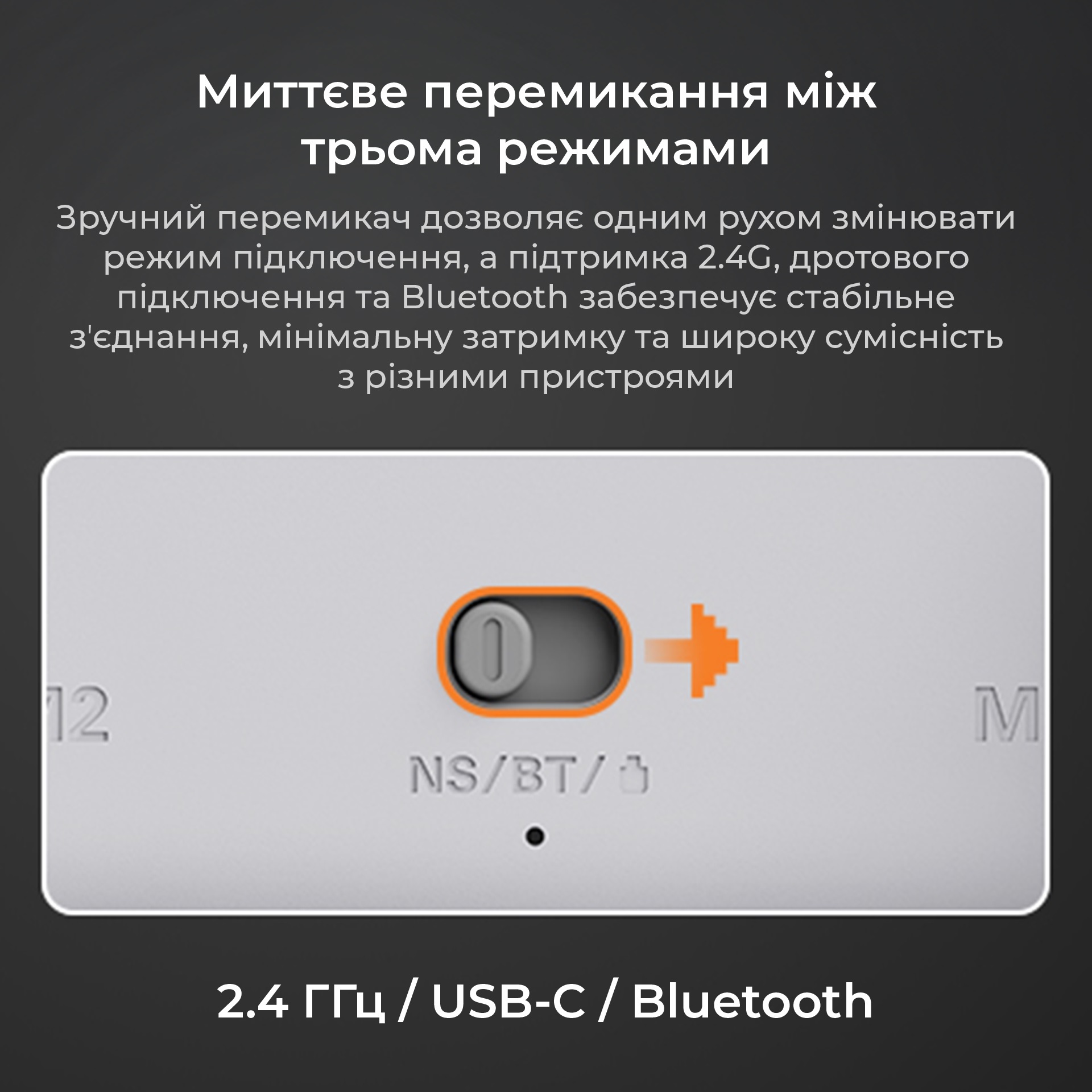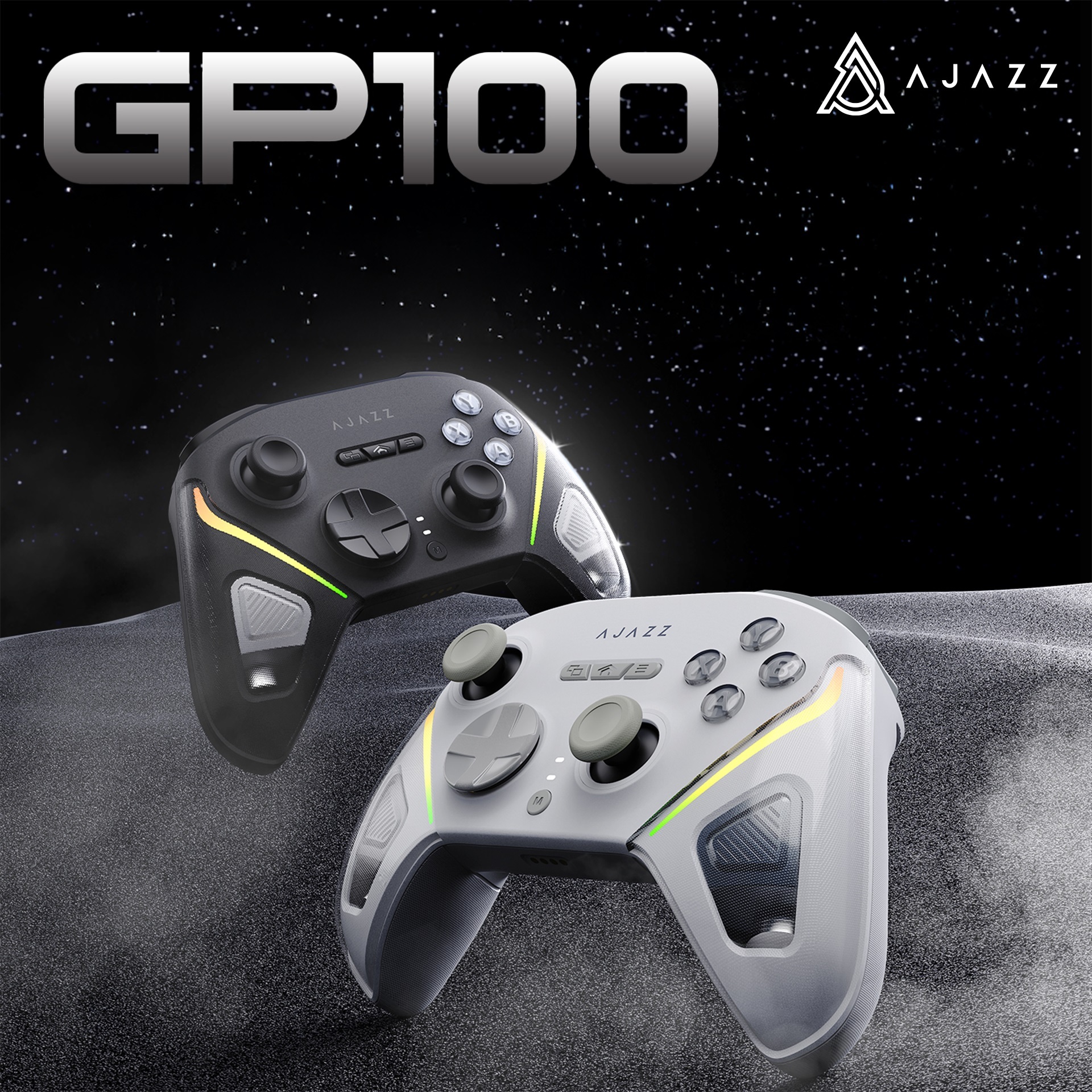 Ajazz GP100 підтримує три способи підключення: Bluetooth 5.3 / 2.4 GHz бездротовий адаптер / дротове підключення через USB-C. Вбудований акумулятор забезпечує тривалу автономну роботу, а ергономічна форма та текстурні накладки роблять геймпад зручним навіть під час тривалих ігрових сесій.