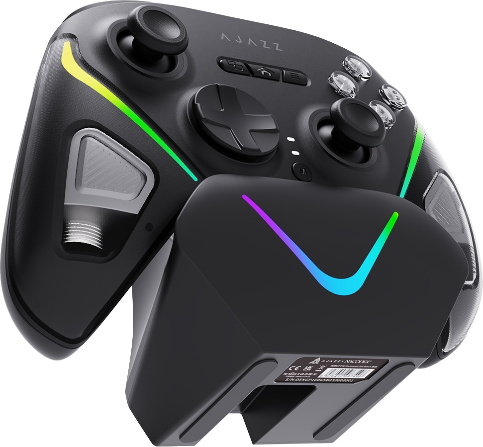 Ajazz GP100 підтримує три способи підключення: Bluetooth 5.3 / 2.4 GHz бездротовий адаптер / дротове підключення через USB-C. Ajazz GP100S комплектується док-станцією, яка слугує зручним місцем для зберігання та заряджання геймпада. Вбудований акумулятор забезпечує тривалу автономну роботу, а ергономічна форма та текстурні накладки роблять геймпад зручним навіть під час тривалих ігрових сесій.