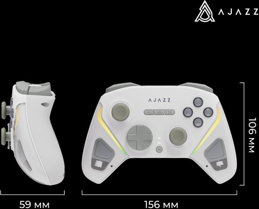 Ajazz GP100 підтримує три способи підключення: Bluetooth 5.3 / 2.4 GHz бездротовий адаптер / дротове підключення через USB-C. Ajazz GP100S комплектується док-станцією, яка слугує зручним місцем для зберігання та заряджання геймпада. Вбудований акумулятор забезпечує тривалу автономну роботу, а ергономічна форма та текстурні накладки роблять геймпад зручним навіть під час тривалих ігрових сесій.