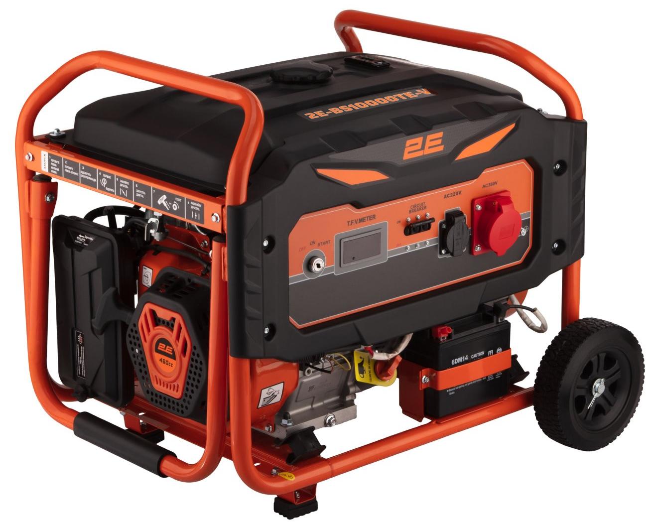 Трифазна модель 2E-BS10000TE-V із чотиритактним двигуном оснащена номінальною потужністю 7.7 кВт. Цього цілком достатньо, аби налагодити роботу основних комунікацій в оселі: зокрема забезпечити освітлення, заживити водний насос, електроплитку, холодильник, телевізор, бойлер, навіть котел чи інші чутливі пристрої за використання інвертора. Доступні два способи запуску установки – ручний та електричний. Працює генератор на бензині, об’єм бака для пального – 25 л. Конструкцією передбачено дві розетки, руків’я й колеса для транспортування.