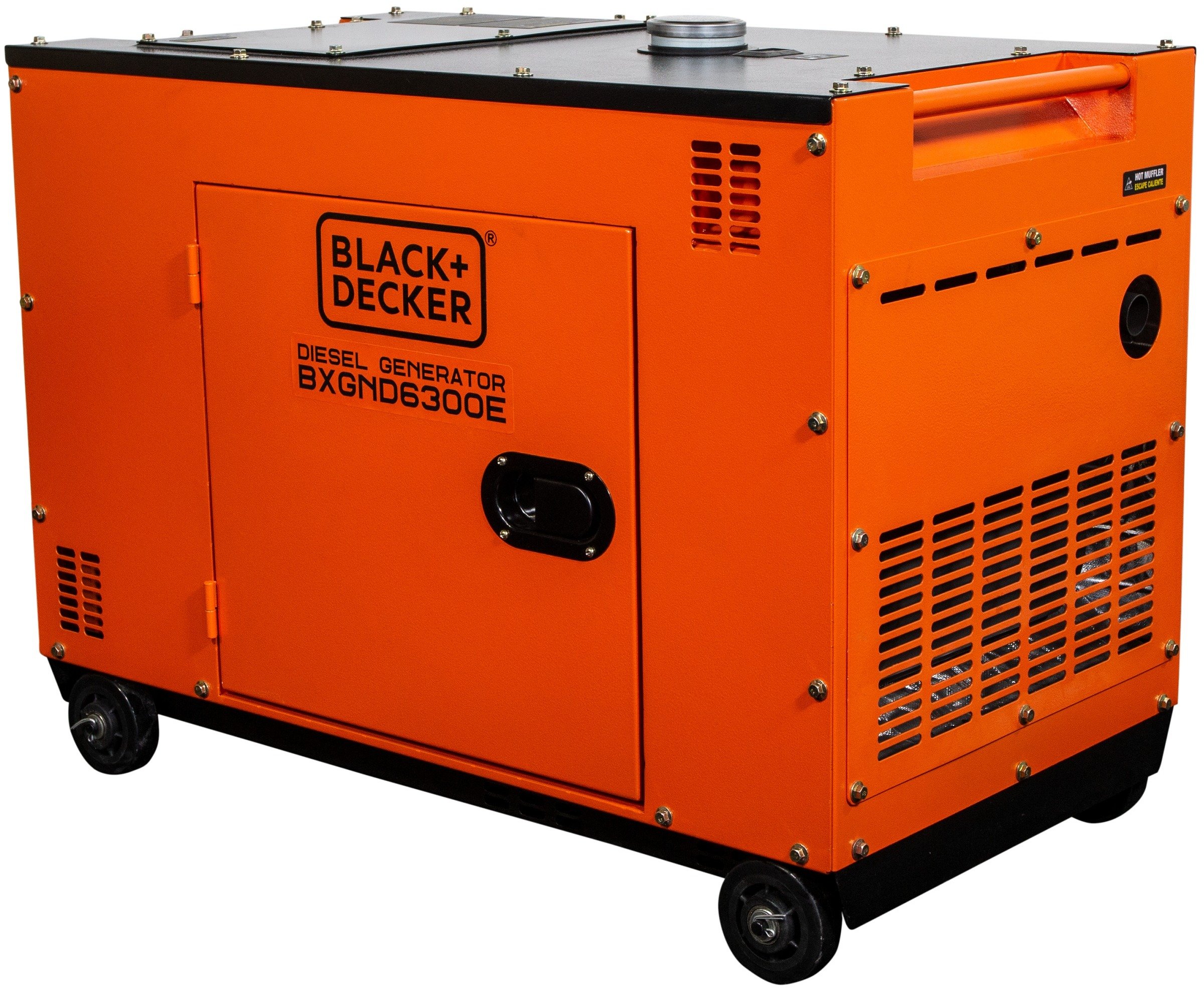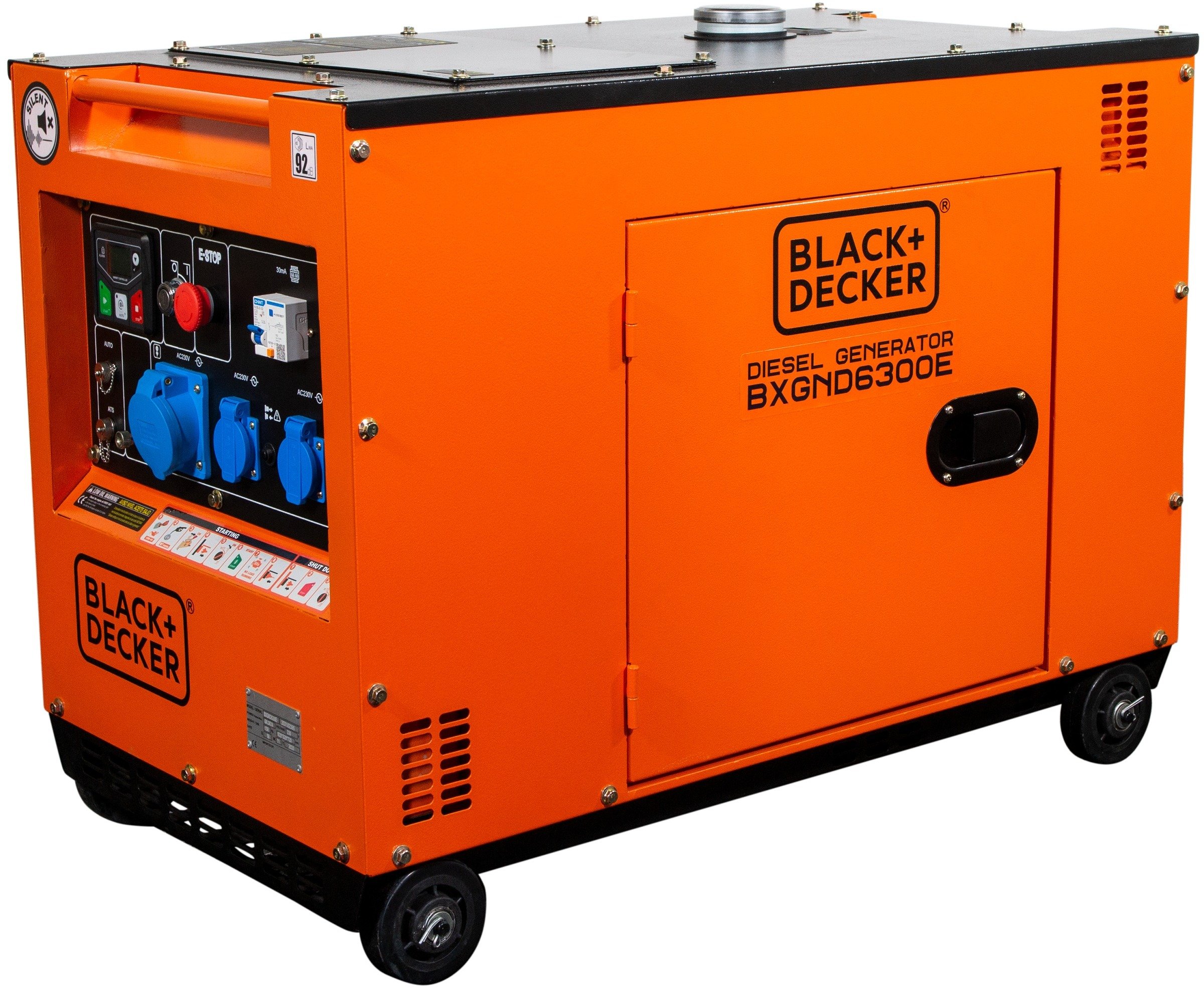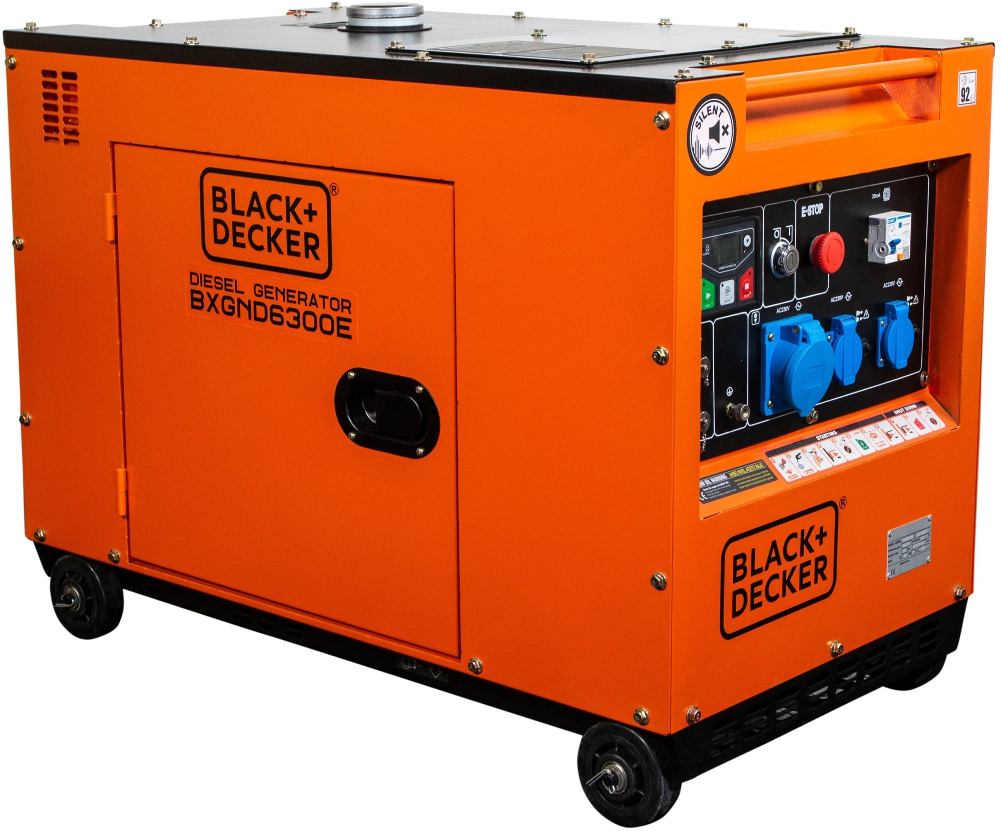 Дизельний генератор Black&Decker BXGND6300E є однофазним пристроєм з номінальною напругою 230 В і частотою 50 Гц. Він оснащений надійним електростартером для зручного запуску. Генератор виконаний у закритому корпусі зі ступенем захисту IP23M, що забезпечує базовий захист від зовнішніх впливів.