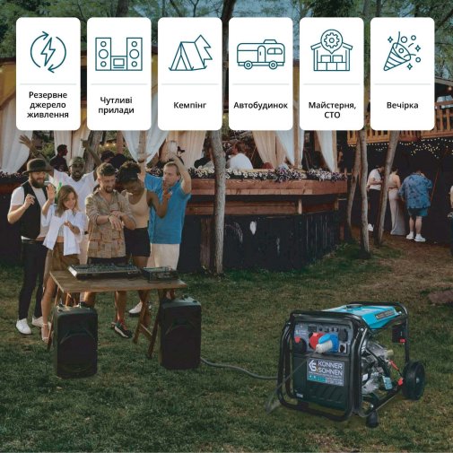 Універсальний вмикач 3 в 1 поєднує функції паливного крану, повітряної заслонки та електричного запуску для зручного старту. Режим економії палива ECONOMY MODE знижує витрати палива до 50% при низьких навантаженнях за рахунок зменшення обертів двигуна. Потужний і зносостійкий двигун відповідає екологічному стандарту EURO 5 та гарантує довготривалу і безпечну експлуатацію.